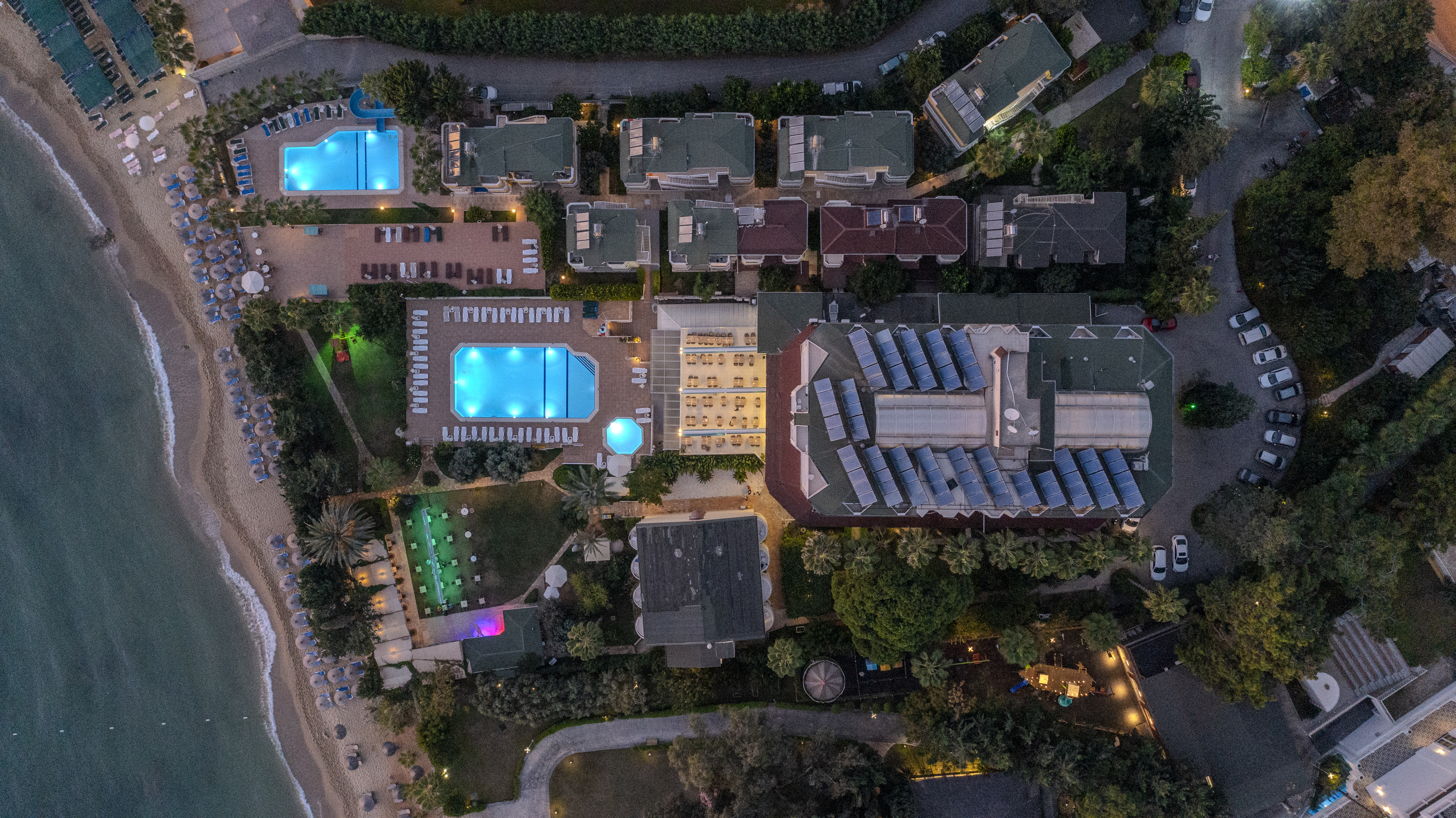 Otel, altı katlı bir ana binadan ve , üç katlı yedi adet yan binalardan oluşmaktadır. Otel toplam 124 odaya sahiptir. Otel müşterilerine resepsiyon, lobi, Tv köşesi, ana restoran 2 adet bar (1x lobi bar,1 x bahçe bar) fitness odası SPA bölümü, çeşitli dükkanlar, kuaför, gün içerisinde animasyon (soft) 1 adet yüzme havuzu havuzda ve deniz kıyısında şezlong şemsiye ve plaj havlusu ücretsiz minder ücretli kapalı havuz (ısıtmasız) 1 adet çocuk havuzu (ayrı) çocuk alanı sunulmaktadır.